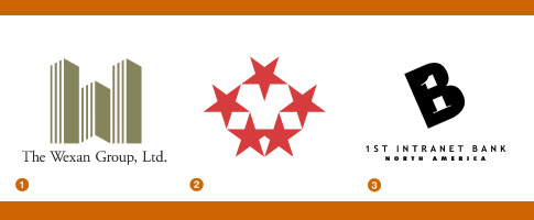 Los logos de The Wexan Group (creado por Liska) y de 1st Intranet Bank son excelentes ejemplos de logos refinados.