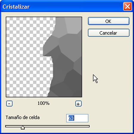 6. Ahora volvemos al menú Filtro/Pixelar/Cristal