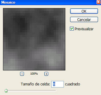 Después a Filtro/Pixelizar/Mosaico Ponemos valor: 8