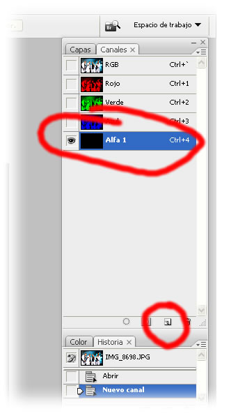10. Vamos al menú Selección/Cargar Selección y seleccionar el canal Alfa1