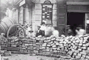 El adoquín puede contemplarse como un testimonio de primitividad, una proyección de la tosquedad originaria del hombre o un recuerdo de la brutalidad humana. Pero, a la vez es por encima de todo un símbolo de la civilización, del progreso asociado en Occidente a la revolución urbana. No obstante, la asociación más común que realizamos con el adoquín proviene de las convulsiones sociales que van desde las revoluciones liberales del siglo XIX hasta el antiburgués Mayo francés del 68. La calle, la barricada, el adoquín conformaban y conforman una triada visual inquietante, no exenta de romanticismo pero en absoluto nada halagüeña.