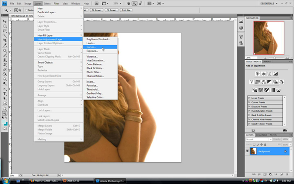 En este tutorial, voy a utilizar la herramienta Curvas de ajuste para corregir el color de mi imagen. Recuerde que siempre funciona en capas en lugar de aplicar directamente a las posibles adaptaciones de la imagen. Ahora vaya a Capa> Nueva capa de ajuste> Curvas.