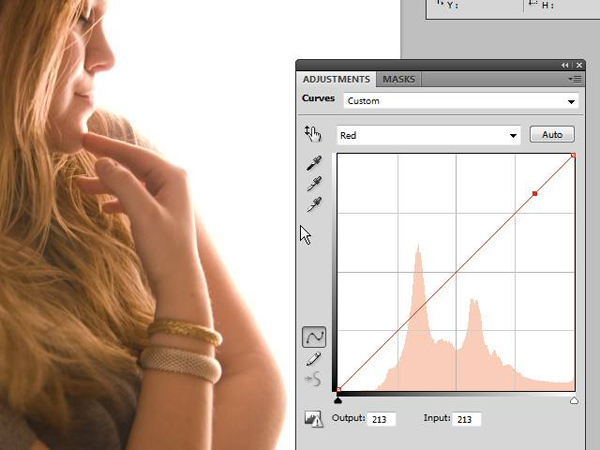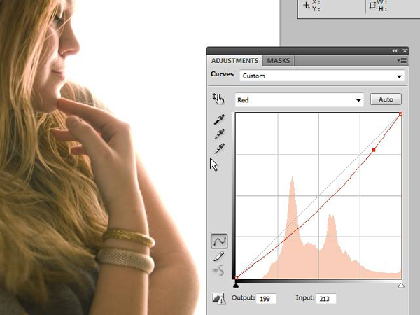 En este caso, mi número de entrada es de aproximadamente 213, en la expresión matemática que indica que el más ligero de la imagen. Ahora para reducir la saturación de color rojo, tengo que cambiar mi número de salida a menos de 213, que en este caso va a ser alrededor de 199.
