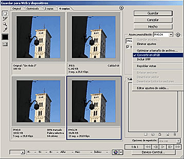 Ahora el menú "Guardar para web y dispositivos (móviles)" tiene la opción "Convertir en sRGB" que hace exactamente eso (con propósito de conversión colorimétrico relativo). Si después se incorpora el perfil (lo que sólo es posible en el caso de imágenes JPEG), se dispone del mejor sistema posible para guardar imágenes para la web.