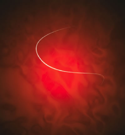 13. Ahora añadimos algunas partículas. Para ello crear una nueva capa a continuación, seleccione un pequeño pincel de tamaño 3 - y sólo algunos puntos en la pintura. Contribuye si están agrupados hacia el centro del resplandor de manera que parece que emana de allí.