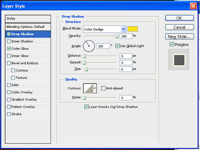 En pocas palabras he añadido dos conjuntos de brilla. Para ello por primera vez el uso Outer Glow y, a continuación, porque quiero una segunda brillo, cambiar la configuración de la sombra para que se convierta en un resplandor (puede hacerlo mediante la reducción de la distancia y los cambios en la mezcla de algo así como el modo Color Dodge)