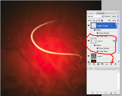 10. Así que ahora usted tiene la misma línea pero con un resplandor fresco procedente de él. La belleza de utilizar una capa de estilo es que se puede copiar y pegar a otras capas. Para ello sólo clic con el botón derecho y seleccione la capa "Copiar Layer Style" y luego crear una nueva capa y el botón derecho del ratón y seleccione "Pegar capa de Estilo".