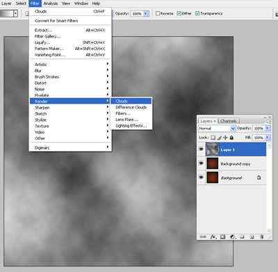 Luego vaya a Filter> Render> Clouds. Esto le dará una pauta aleatoria nube que en el caso anterior.