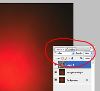4. Ahora configure la opacidad de su capa de "superposición" y el 30% de transparencia. En algunos casos esto sería suficiente, pero para nuestras necesidades queremos que incluso smokier busca!
