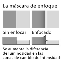 Las imágenes digitales a las que no se aplica algún proceso de enfoque digital (sharpening) parecen planas y carentes de contraste, por lo que parecen carecer de definición. Los usuarios quieren que las imágenes JPEG que salen de sus cámaras se vean bien, por lo que la cámara aplica un proceso de ''máscara de enfoque'' (unsharp mask) a los ficheros. Lo que esa máscara de enfoque hace es buscar las zonas fronterizas entre luces y sombras y aumentar su diferencia tonal. Al hacerlo, se producen una especie de halos en esos bordes. Si el proceso de enfoque digital es demasiado intenso, esos halos serán visibles al imprimir el fichero. Si es demasiado débil, las imágenes carecerán de definición. Lo normal es que los usuarios dispongan de una a tres opciones de ajuste de enfoque digital en sus cámaras.