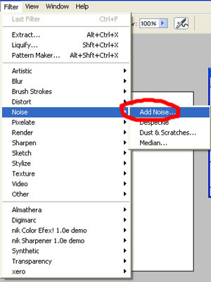 4. Aplique el filtro Noise en Filter/Noise/Add Noise...