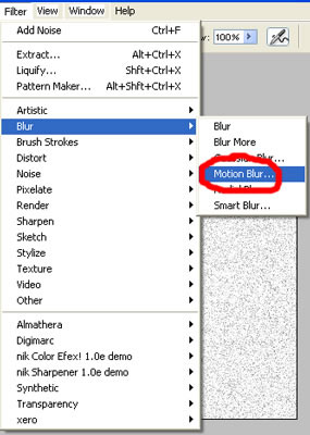 8. Ageguemos un filtro por Filter/Blur/Motion Blur.