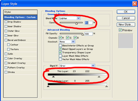 7. De doble clic en el nombre de la nueva capa para que aparezca la ventana de " Layer Style" y cambie las siguientes opciones: