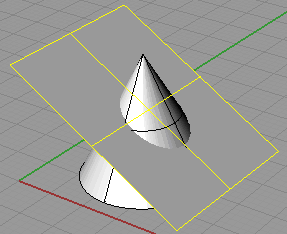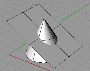 El resultado hasta este momento es el que se muestra a continuación en el que se tienen el cono y el plano que esta cortándolo en forma oblicua.