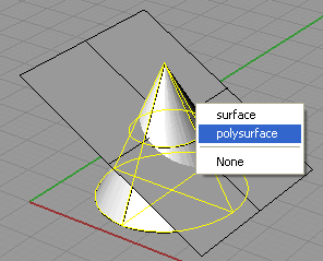 -Seleccione ahora la superficie que se va a cortar, por el lado que se va a cortar; en este caso en la parte superior del cono.