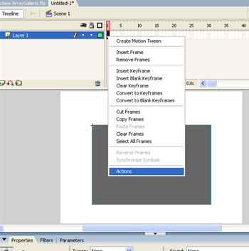 4.Ahora nos ubicamos en el primer frame de la película y damos click derecho y seleccionamos la opción Action