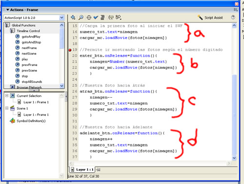 6.General los códigos que permitirán realizar la interactividad del programa con las fotos así: