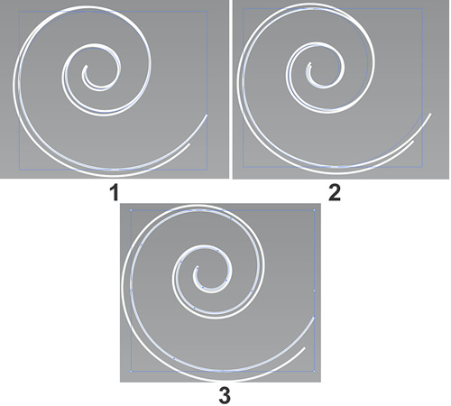 7.    Tomamos la herramienta flecha negra y reducimos la figura desde arriba como lo muestra la figura 1, luego lo cerramos de los lados como lo muestra la figura 2 y deberá quedar como la figura 3.