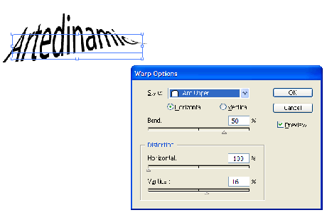 Distortion: Horizontal: -100%, vertical: 16% y click al botón OK