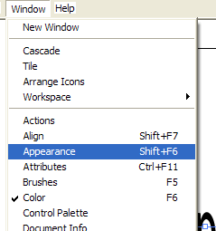 4. Si deseas hacerle cambios al efecto damos click al menú Window/Appearance