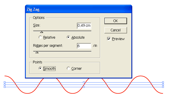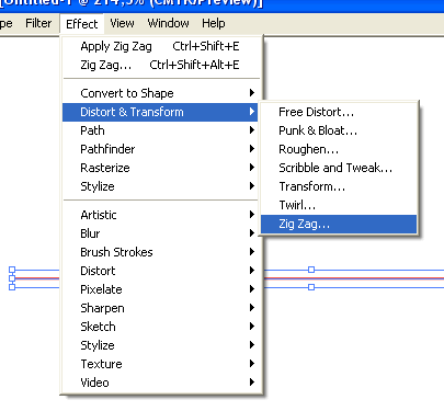 2. De clic al menú Effect/Distort & Transform/Zig Zag...