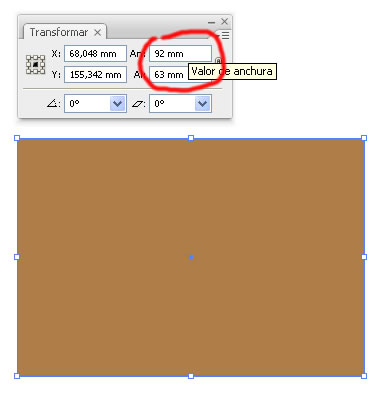 1. Realicemos un rectángulo de 92x63 mm y con las siguientes características de color C:30, M:50, Y:75, K:10: