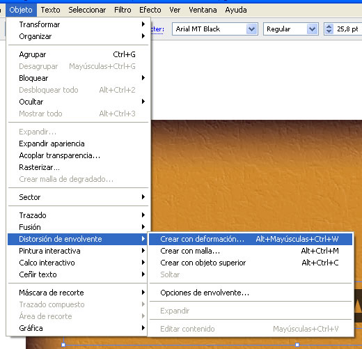 13. Vamos al menú Objeto/Distorsión Envolvente/Opciones de Deformación: