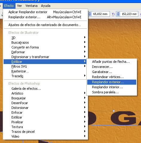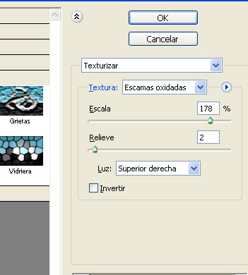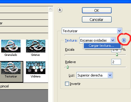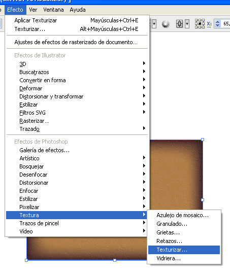 3. Chicleamos en el menú Efecto/Textura/Texturizar: