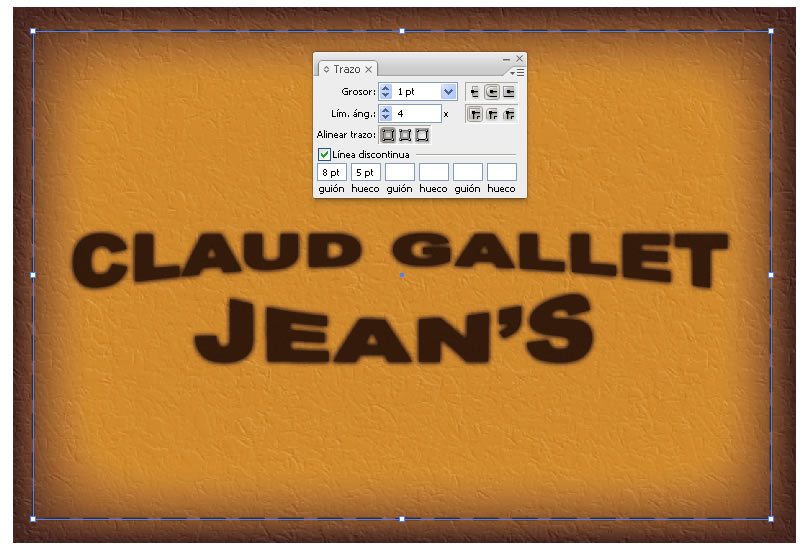 17. Hacemos un rectángulo alrededor de la marquilla y le colocamos las siguientes características a la línea: