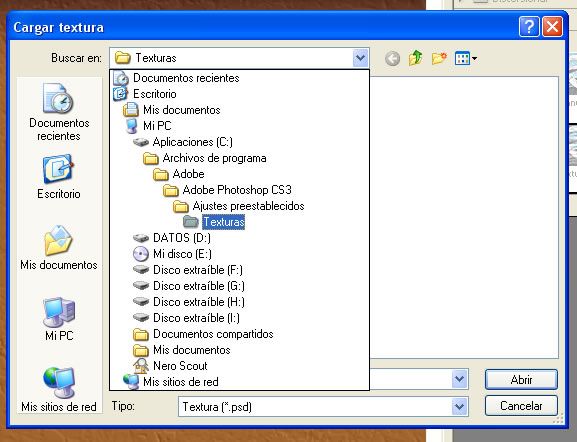 4. Damos click en el botón de la derecha de la opción Textura y le damos click al botón Cargar Textura: