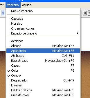 8. Ahora damos click en el menú Ventana/Apariencia: